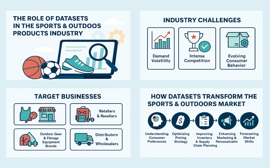 The Sports & Outdoors products industry is evolving rapidly, driven by shifting consumer preferences, the rise of e-commerce, and heightened competition. To stay ahead, companies must move beyond intuition and leverage data-driven insights. High-quality ecommerce datasets enable brands, retailers, and distributors to make smarter decisions about product design, pricing, marketing, and supply chain operations.
